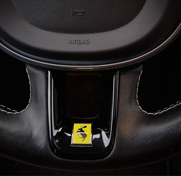 Stuurwiel badge-insert, wordt gebruikt als alternatief voor het bestaande R-Design exemplaar.