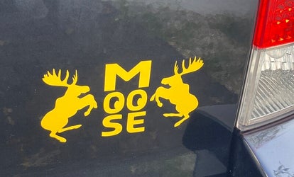 MOOSE stickers in vele kleuren en afmetingen.